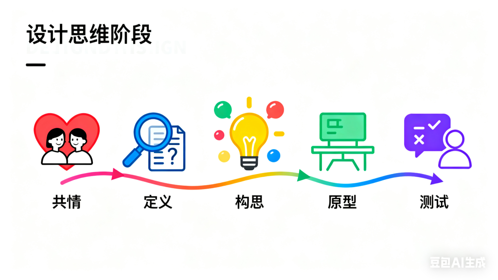 以下是斯坦福 d.school 提出的五阶段模型,结合案例说明每个环节的实践方法: